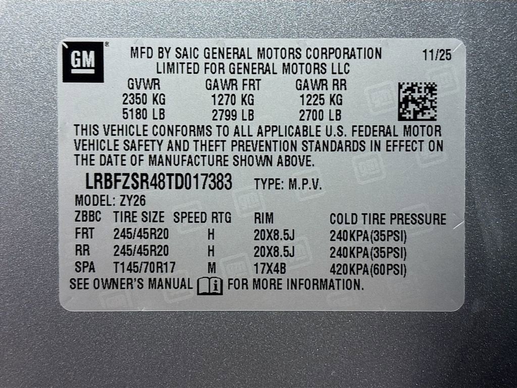 - Tires, P245/45R20 all-season