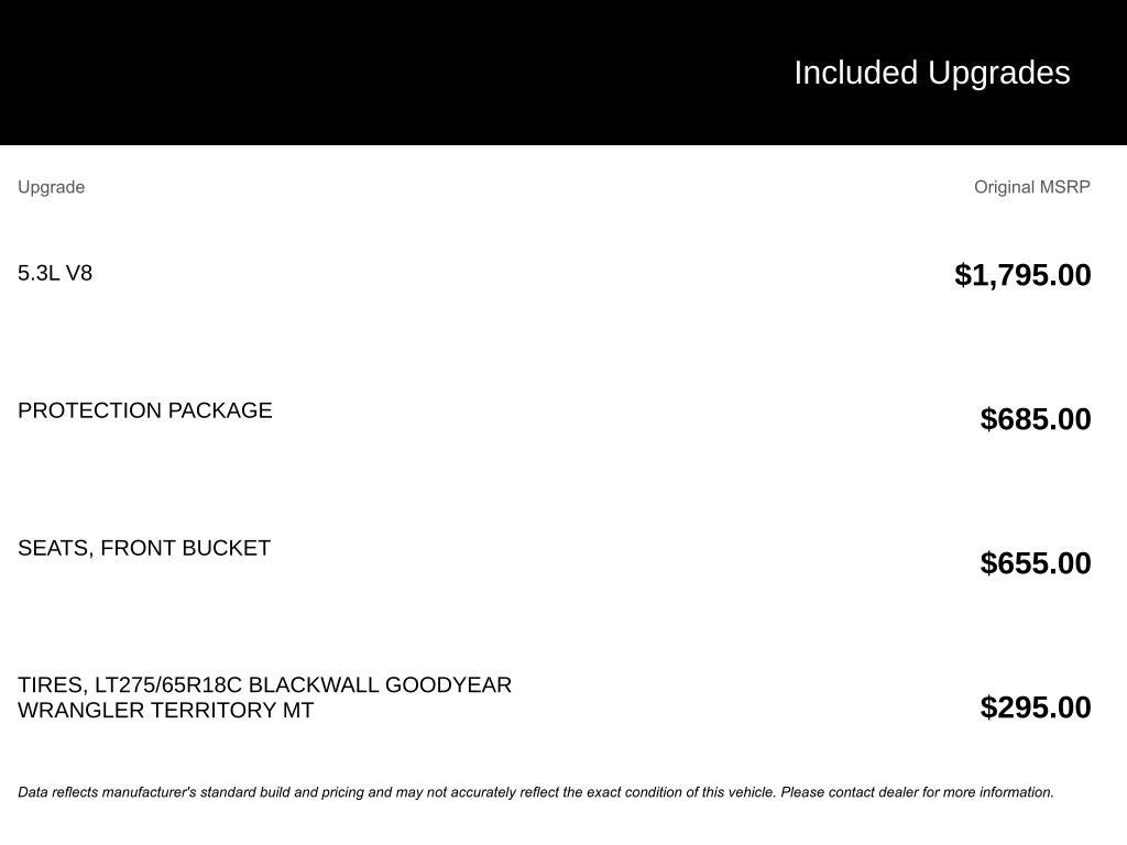 - LT Trail Boss Preferred Equipment Group includes standard equipment