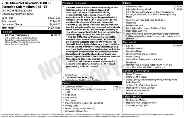 2016 Chevrolet Silverado 1500 EcoTec3 5.3L V8 LT Summit White