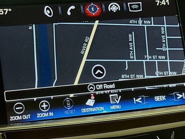 - Cadillac CUE Information and Media Control System with Embedded Navigation, AM/FM stereo with 8" diagonal color information display, four USB ports, two auxiliary power outlets, auxiliary input jack, Natural Voice Recognition and Phone Integration for Apple CarPlay and Android Auto capability for compatible phone