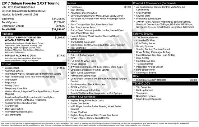 The 2017 Subaru Forester 2.0XT Touring comes equipped with the following upgrades and options: