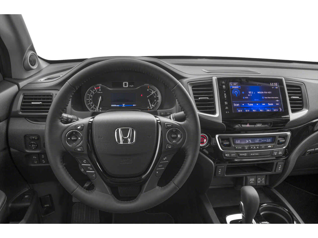 - Radio: AM/FM/MP3 w/Nav System & Truck-Bed Audio -inc: 540-watt premium audio system, 8" display audio w/high-resolution WVGA (800x480) electrostatic touch-screen and customizable feature settings, 8 speakers including subwoofer, Bluetooth® streaming audio, auxiliary input jack, Radio Data System (RDS), speed-sensitive volume control (SVC), 1.5-amp port in front/1.0-amp port in center console, Apple CarPlay, Android Auto, HondaLink, SMS text message function, HD radio, Pandora compatibility and 2.5-amp charging port