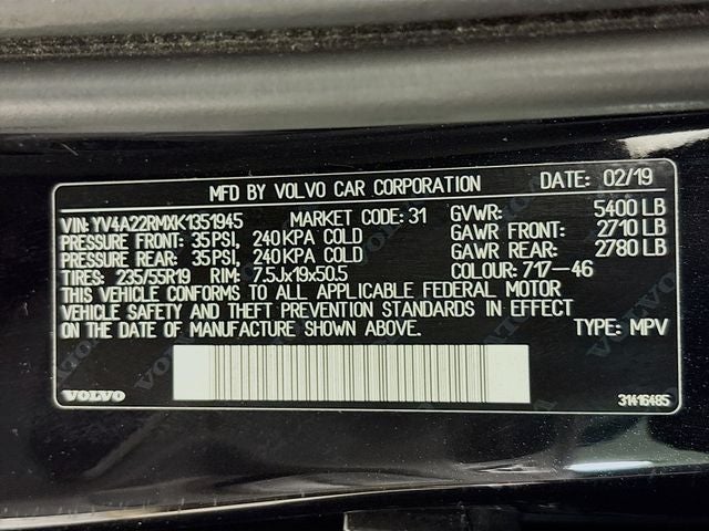 The 2019 Volvo XC60 T6 R-Design comes equipped with the following upgrades and options: