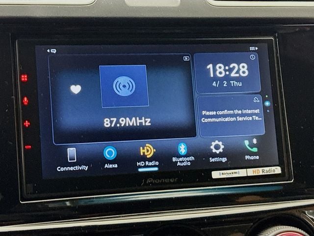 - Radio: Subaru STARLINK 6.5" Multimedia Plus System -inc: AM/FM stereo HD Radio w/single-disc CD player, MP3/WMA/CRR/RW file capability, multi touch gesture high resolution display, 6.5" LCD screen, voice activated controls, Bluetooth® audio streaming connectivity, Bluetooth® hands-free phone connectivity, Bluetooth® hands-free SMS text messaging connectivity (applicable w/compatible cell phone), iPod control capability, rear-vision camera display, SiriusXM All Access radio (subscription required), SiriusXM Travel Link (subscription required), smartphone integration: AHA, Android Auto, CarPlay, Pandora and STARLINK cloud applications, 6 speakers, 3.5mm auxiliary input jack, dual USB ports and roof mounted audio and satellite antenna