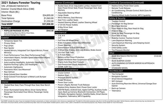The 2021 Subaru Forester Touring comes equipped with the following upgrades and options: