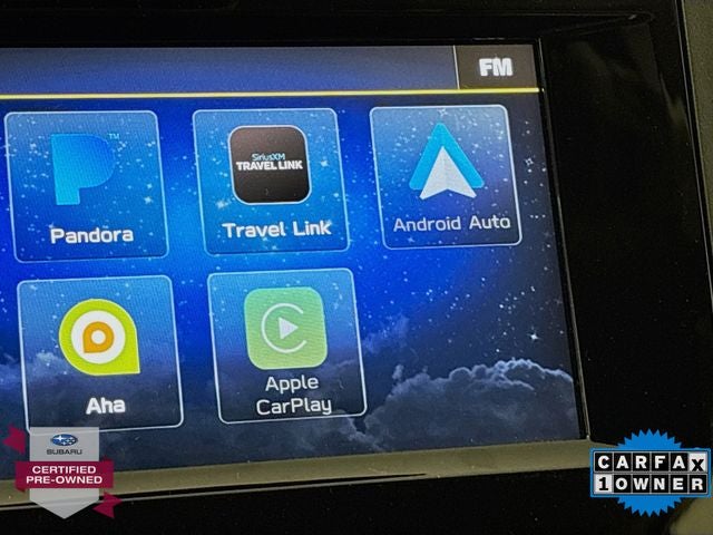 - Radio: Subaru STARLINK 6.5" Multimedia Plus System -inc: AM/FM stereo, HD Radio, single disc CD player w/MP3/WMA/CRR/RW file capability, multi-touch gesture high resolution display screen, voice activated controls, Bluetooth® audio streaming and hands-free phone connectivity, Bluetooth® hands-free SMS text messaging connectivity, iPod control capability, SiriusXM All Access Radio (4 months free trial/subscription required after), SiriusXM Travel Link (4 months free trial/subscription required after), smartphone integration: AHA, Android Auto, CarPlay, Pandora and STARLINK cloud applications, USB audio system update, steering wheel audio and Bluetooth® control switches, 6 speakers (2 dash panel tweeter, 2 front door and 2 rear door), 3.5mm auxiliary input jack and front dual USB A input/charge ports