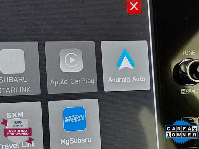 - Radio: Subaru STARLINK 11.6" Multimedia Plus Sys -inc: AM/FM stereo, HD Radio, multi-touch gesture high resolution display screen, voice activated controls, Bluetooth® audio streaming and hands-free phone connectivity, Bluetooth® hands-free SMS text messaging connectivity, iPod control capability, SiriusXM All Access Radio (4 months free trial included/subscription required after), SiriusXM Travel Link (4 months free trial included/subscription required after), smartphone integration: Android Auto and Apple CarPlay w/full screen view and wireless connection, USB and Over The Air (OTA) audio system update, steering wheel audio system and Bluetooth® control switches, 6 speakers (2 dash panel tweeter, 2 front door and 2 rear door), illuminated 3.5mm auxiliary input jack, illuminated front USB A and C input/charge ports and illuminated rear USB A and C charge ports