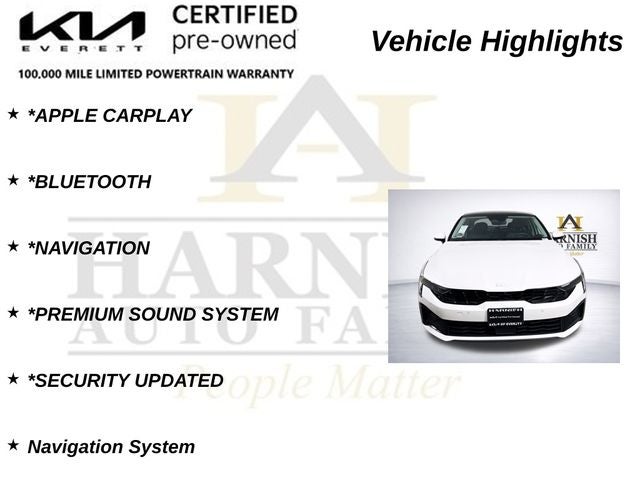 As a Kia Factory Certified vehicle, this K5 EX has undergone a rigorous inspection and reconditioning process, ensuring that it meets the highest standards of quality and performance. You can trust that this vehicle has been meticulously maintained and is ready to provide you with years of reliable service.